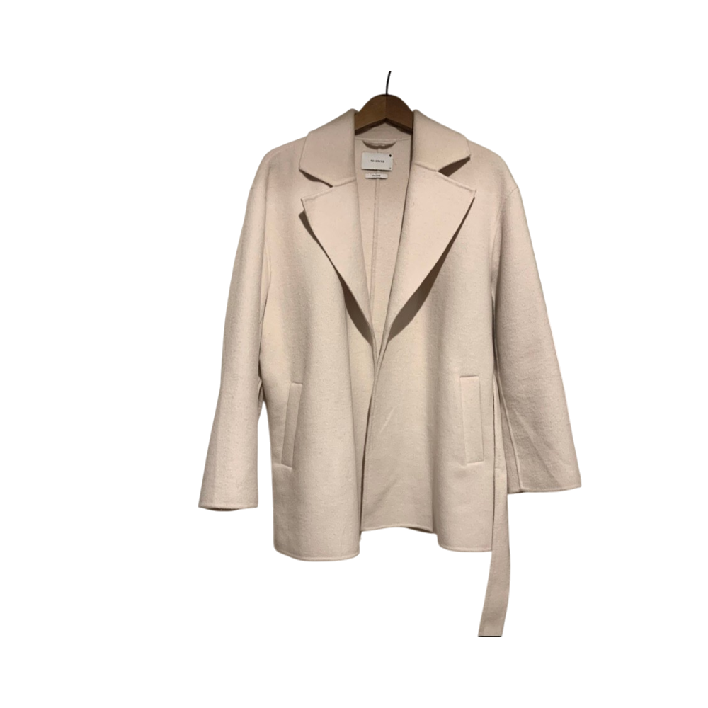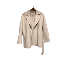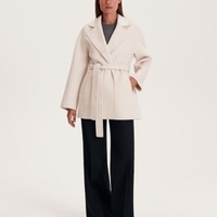 Lyhyt vyötäröllä sidottava villakangastakki, minimalistinen malli. 70% villaa. Ihan uusi, hintalappu kiinni.
