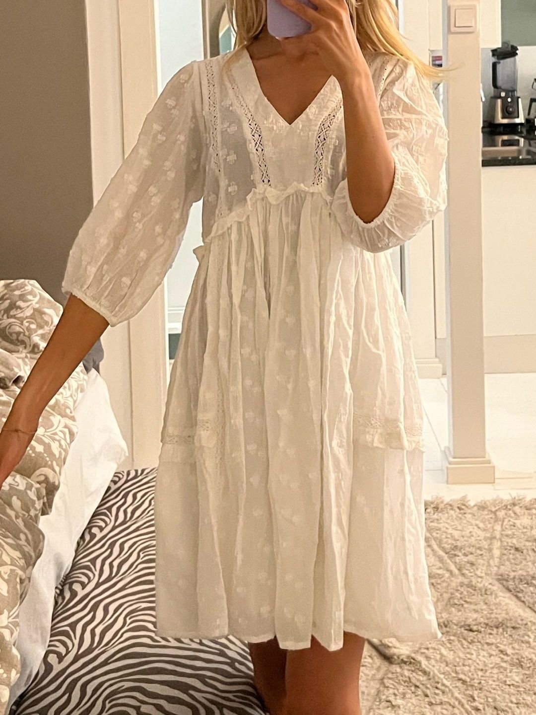 Upea valkoinen kesämekko. Alla alushame. Koko 34/36. Kokeiltu vain päälle. Malli: Ester. Loppunut sivustolta.