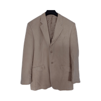 Beige, sinapinkeltainen miesten pikkutakki, klassinen kaksirivinen napitus. Mokka jäljitelmä.