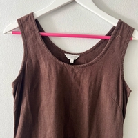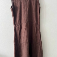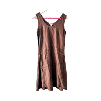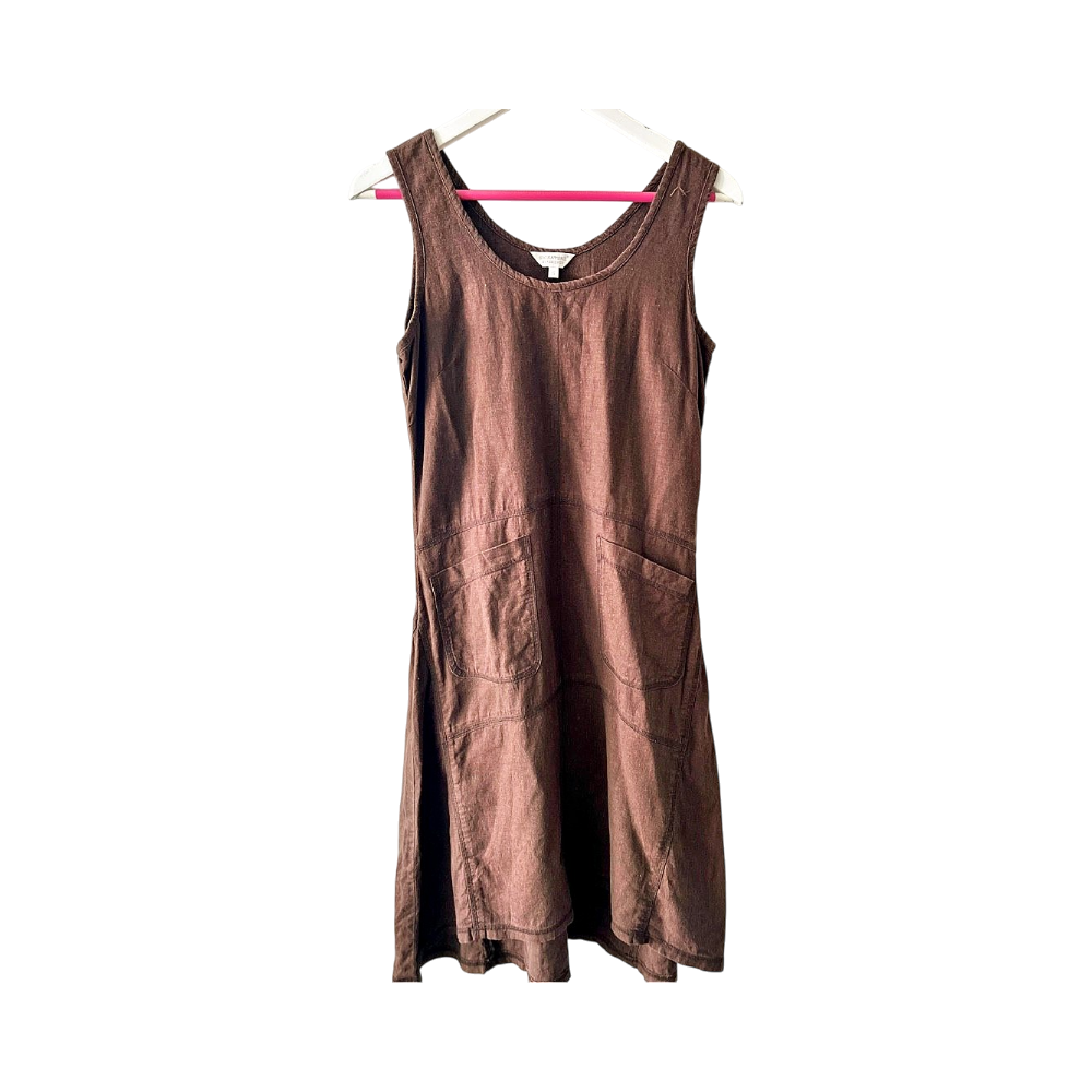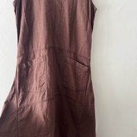 Ruskea pellavamekko, hyvässä kunnossa. Koko s, pituus 107cm ja kai kai mitta 48cm. Pellava/raion