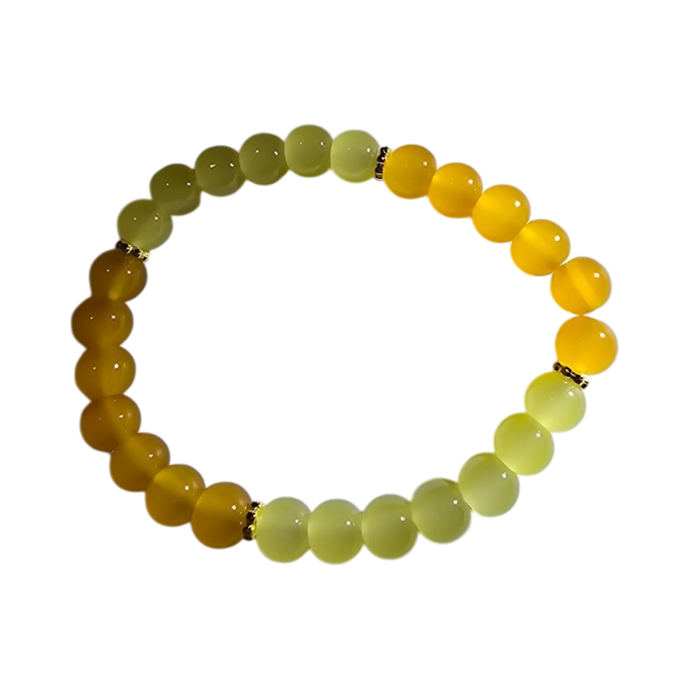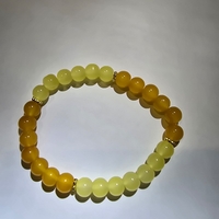 Round yellow and amber beads with small gold spacer accents. Handmade with love bracelets