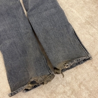Lahkeet menny rikki käytössä, kun on itselle liian pitkät. Kolmannessa kuvassa näkyy irronnut vyön kohta, mutta itse farkuissa ei reikää. Muuten hyvässä kunnossa!