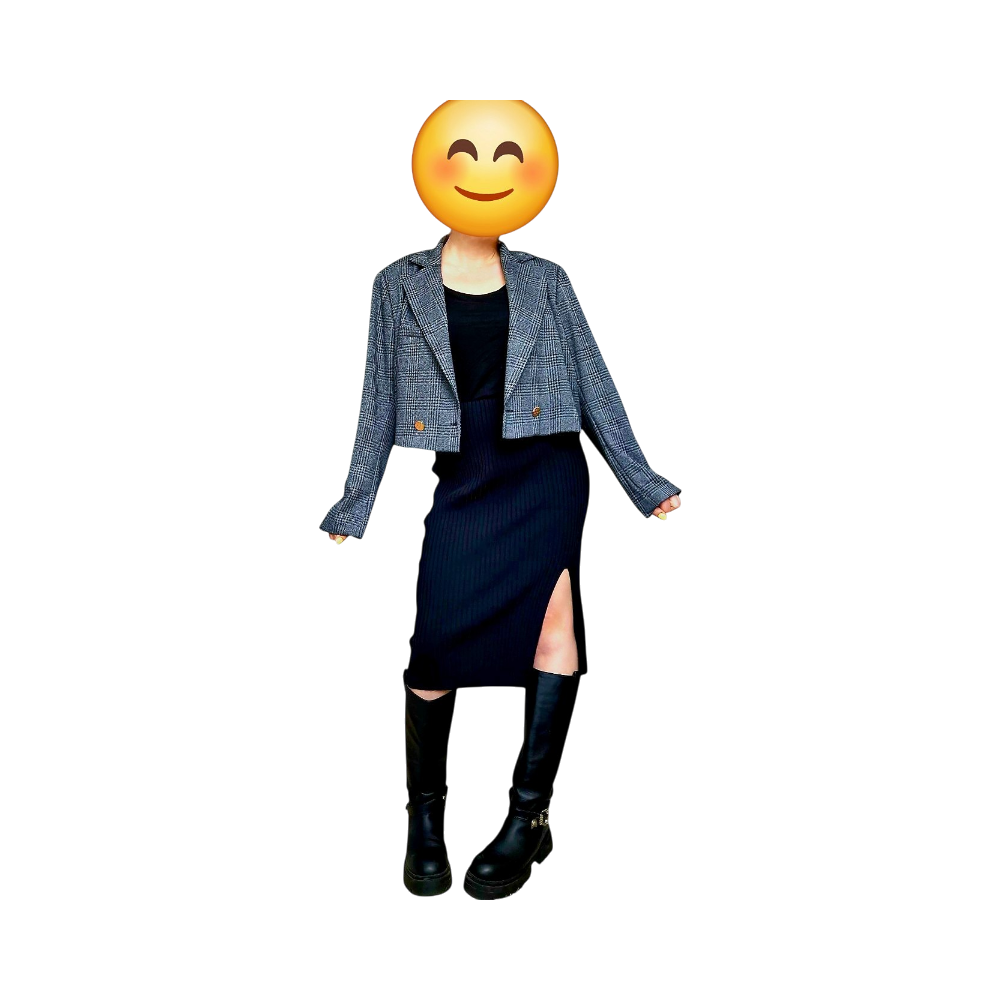 Lyhyt ja väljänmallinen ruudullinen bleiseri