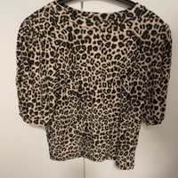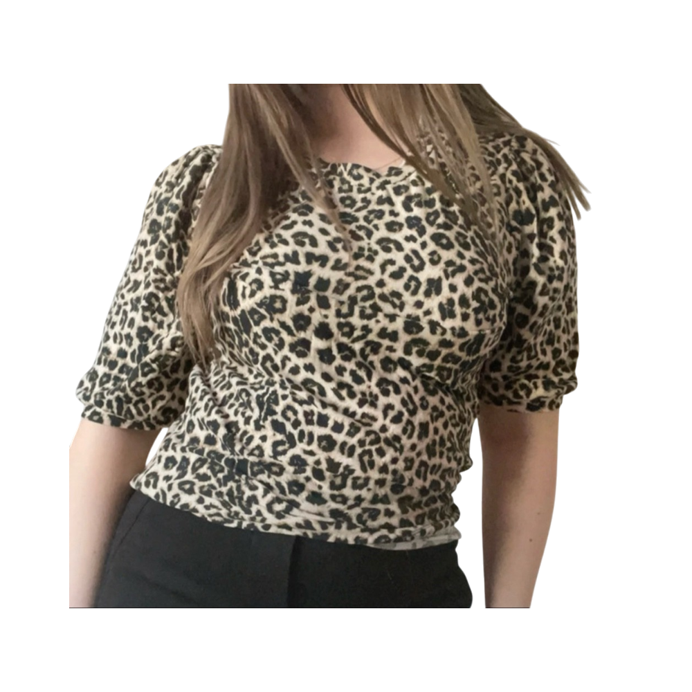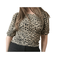 Beige-musta leopardi t-paita, lyhyet puff-hihat
