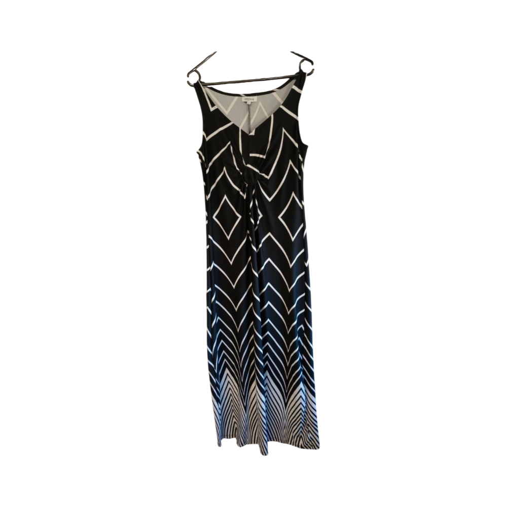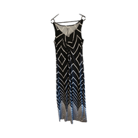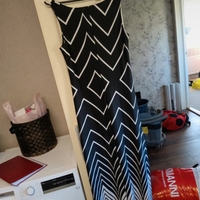Pitkä, hihaton maksimekko graafisella kuviolla. S koko mutta venyy L kokoon asti