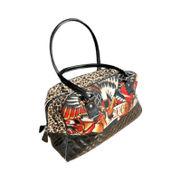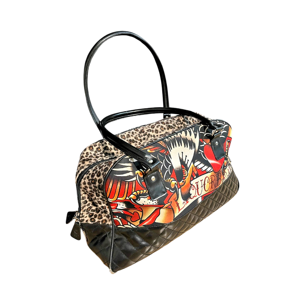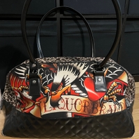 iso y2k sekä ed hardy tyylinen olkalaukku. liquor brand merkkinen ja kooltaan noin 46x22x30. vielä erittäin hyvässä kunnossa lukuunottamatta pieniä kulumia laukun alaosassa jokaisessa kulmassa sekä yhtä irronnutta pohjan tappia. nämä näkyy kuvissa. sisällä myös pientä likaa käytöstä mutta saa varmasti pyyhkimällä pois🤭