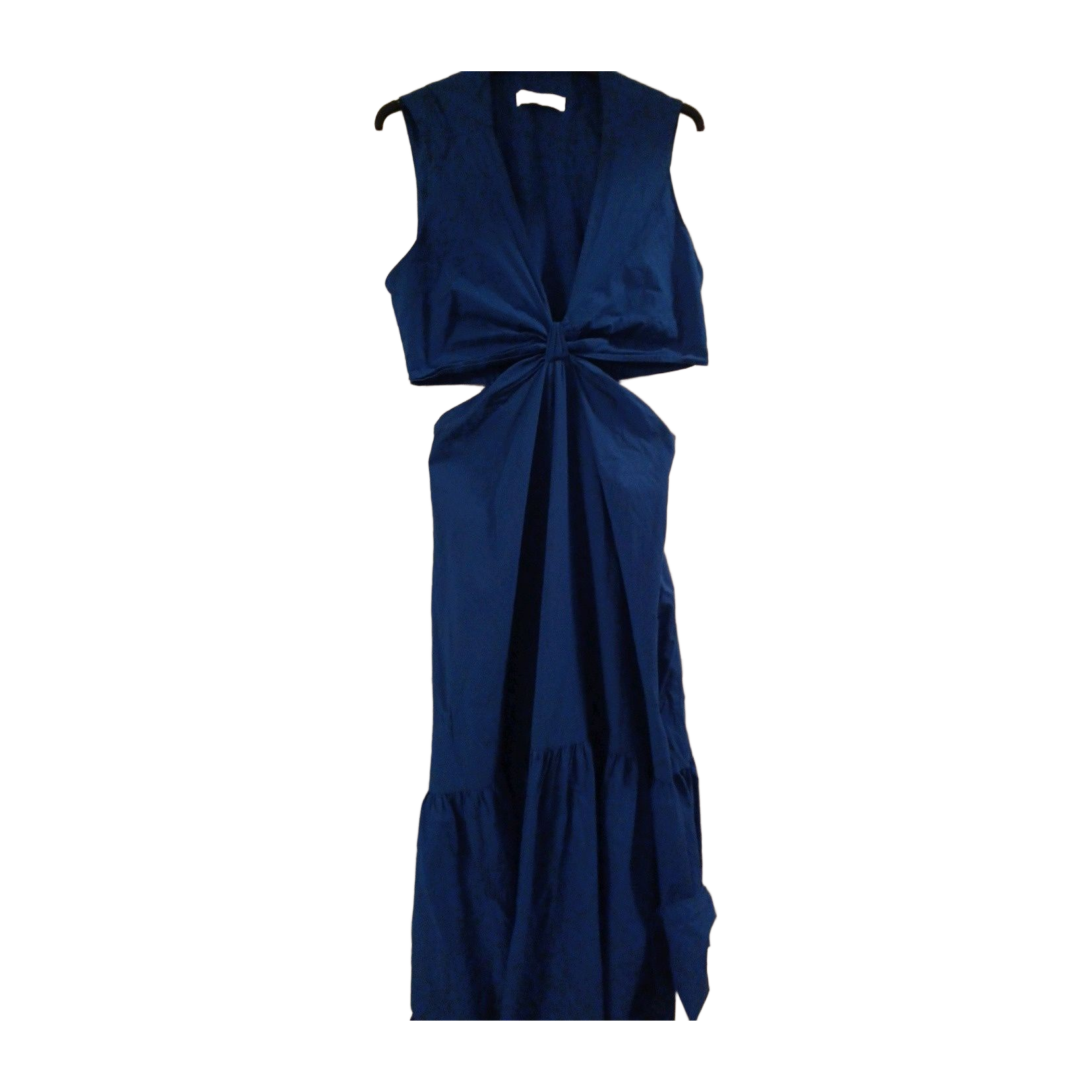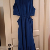 Sininen maximekko avoimilla kyljillä. Itse olen pitänyt niin että väliä ei ole sillä mekon saa nostettua niin. Sivussa vetoketju. Pari kertaa pidetty ihana festarimekko. Koko M 38. Meni hyvin myös minulle joka olen kokoa 40. Kainalo-kainalo noin 48cm ja pituus olka-helma noin 130cm. Ohut ja hengittävä. 100% puuvillaa.