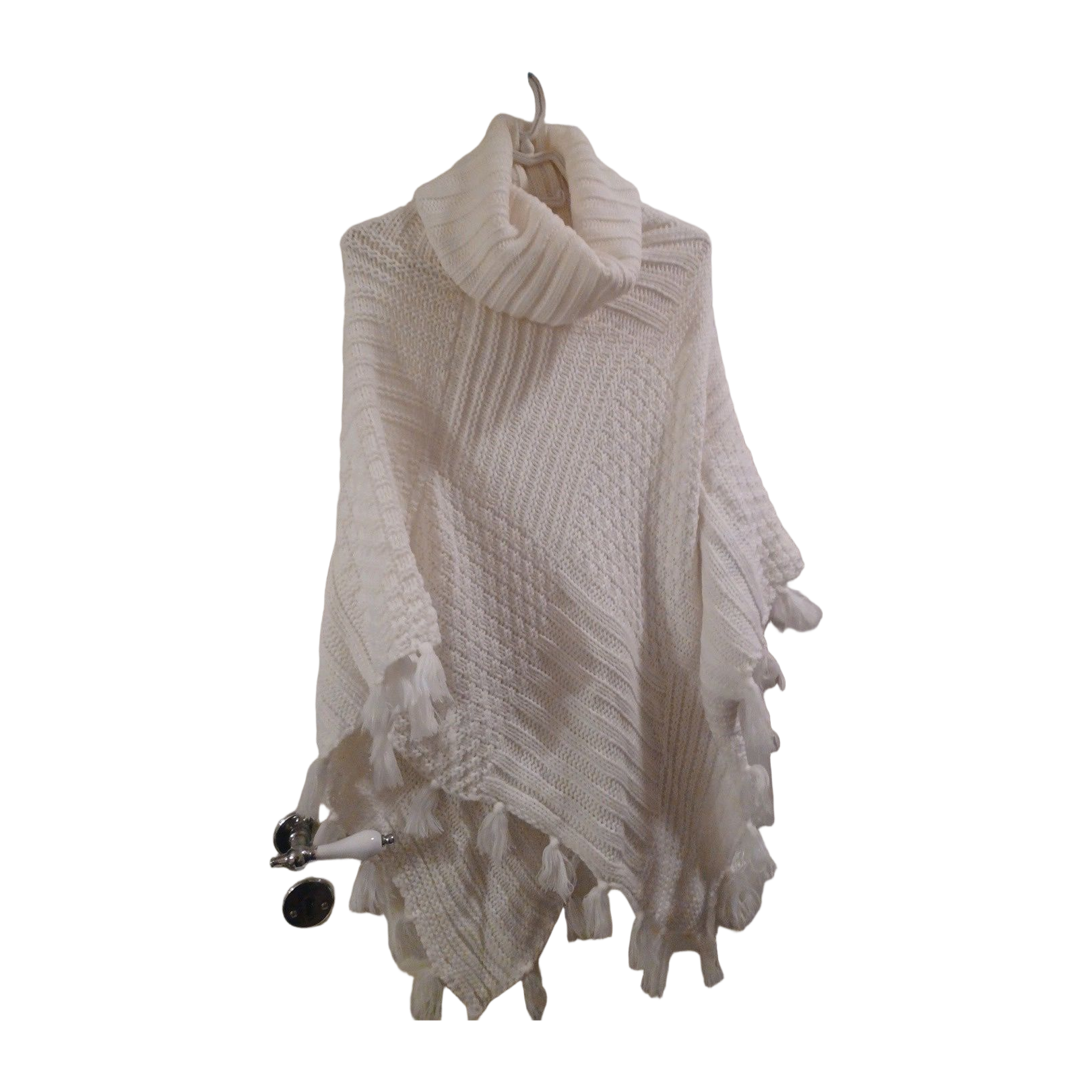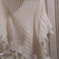 Valkoinen poncho. Pidetty ja pesty kerran. Yhden koon joten sopii monelle vartalolle.