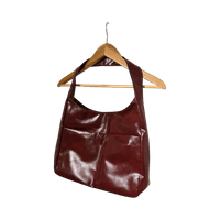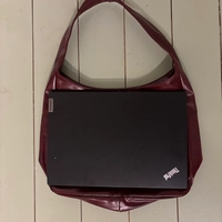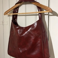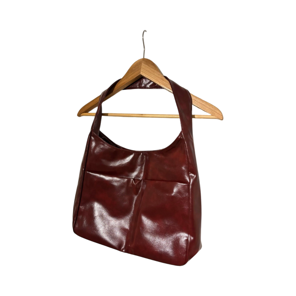 Tilava, pehmeästi kiiltävällä pinnalla oleva laukku.