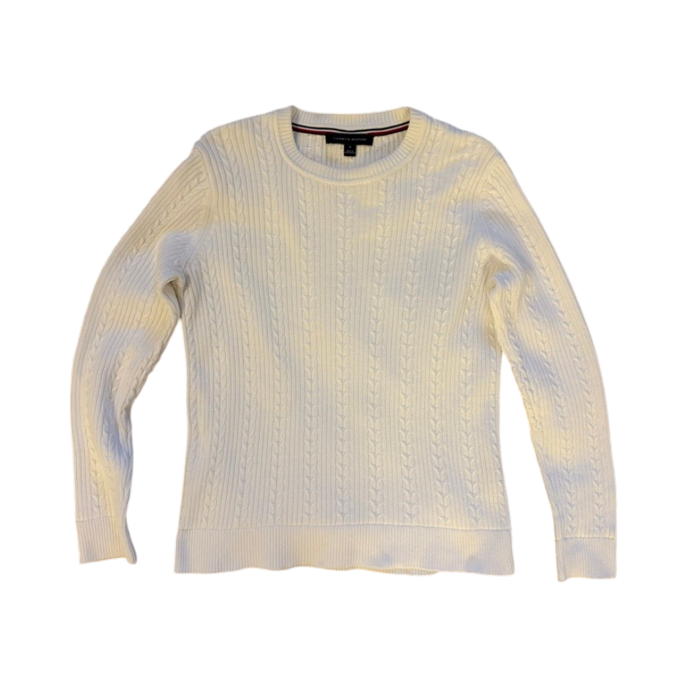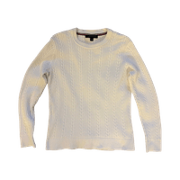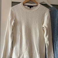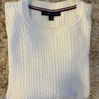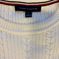 Valkea palmikkoneule, klassinen pyöreä pääntie, pitkähihainen. Tämä Tommy Hilfigerin pusero on klassinen kappale, joka ei koskaan mene pois muodista. Siinä on kaapeliraidallinen kuvio ja pyöreä kaulus. Neule on valmistettu pehmeästä ja mukavasta materiaalista, mikä tekee siitä täydellisen jokapäiväiseen käyttöön.