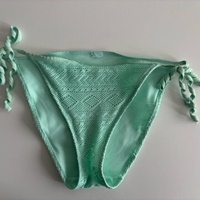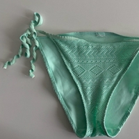 Fresh mint green bikini bottom with crochet-style fabric and adjustable tie sides. Size S / EU 36. In good condition, no stains or damage. Easy to mix and match – pairs beautifully with the mint green push-up bikini top!