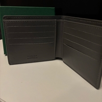 Grey Goyard canvas bifold wallet with multiple card slots.