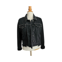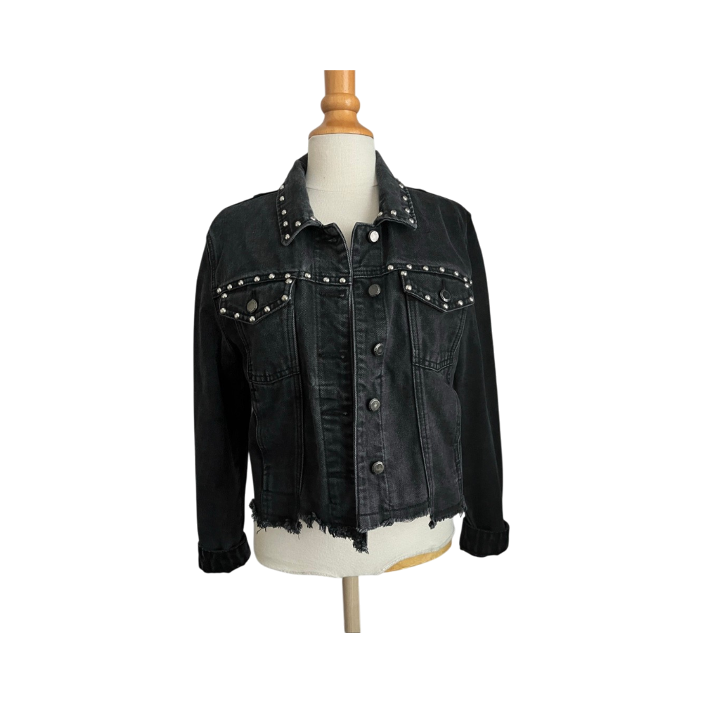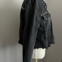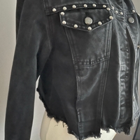 Lyhyt musta farkkutakki hopean niittikoristein. Ei käytön jälkiä. Koko 40
