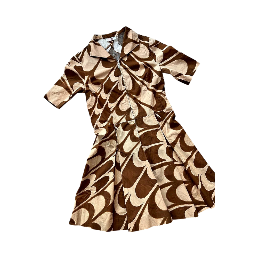 Upea Tiina merkkinen suomalainen vintage mekko, vekitetty helma. Kokomerkintä 42, vastaa pienempää. Pituus 90cm, kai kai mitta noin 46cm ja noin 80cm. Tukevaa puuvillaa