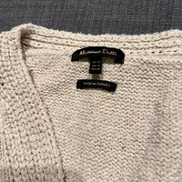 Massimo Dutti beige uuden veroinen naisten neuleliivi. Kokomerkintä XS, oversize malli, sopii XS-S kokoiselle. V-kaula-aukko, edessä kaksi pientä taskua.