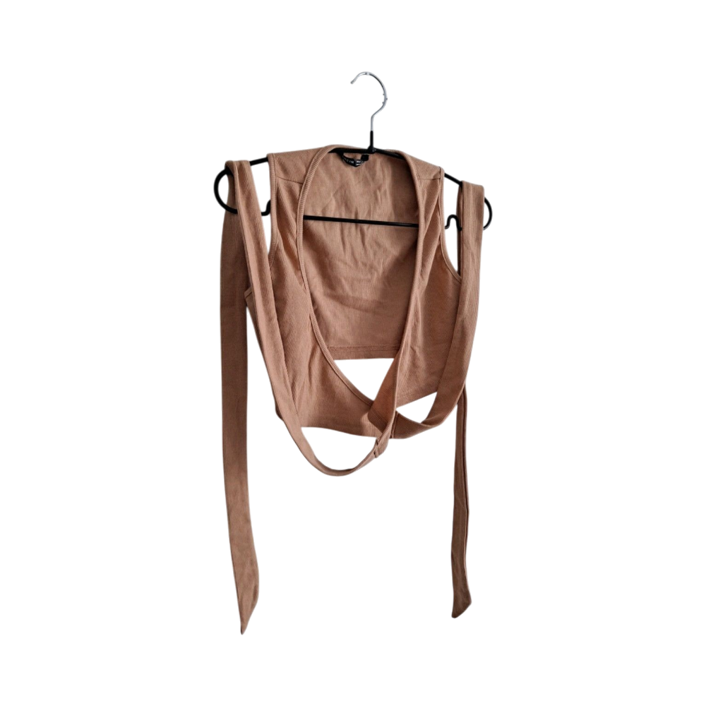 Beige/ruskea Shein croptop. Nyörit kiedotaan vartalon ympärille. Erinomaisessa kunnossa. Sopii XS-S kokoiselle.
