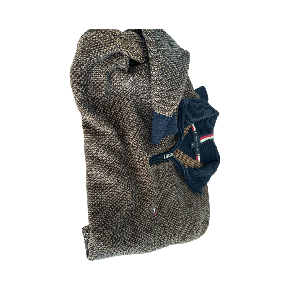 Pehmeä kuvioneule, puolivetoketju ja korkea resorikaulus.