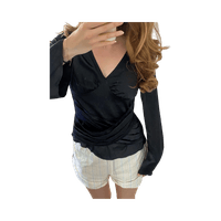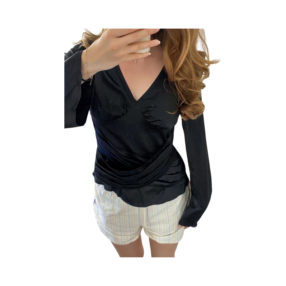 musta satiininen pitkähihainen pusero upeilla yksityiskohdilla koossa 36. käytetty pari kertaa.