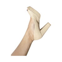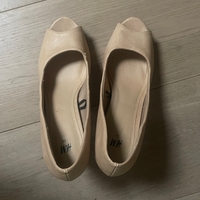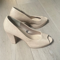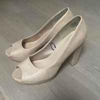 Chunky block heel peep-toe pumps, pre-owned with minor scuffs.