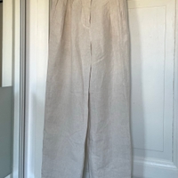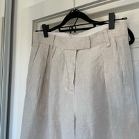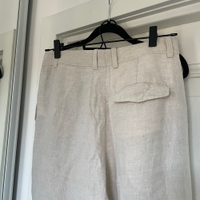 Arketin 100% pellavaa olevat housut. Muutaman kerran käytetty, pesun ja säilytyksen myötä ryppyiset mutta muuten uudenveroiset. Koko 34 mutta XS-S kokoa käyttävälle kiva rento istuvuus, vastaa siis kokoa isompaa.