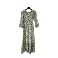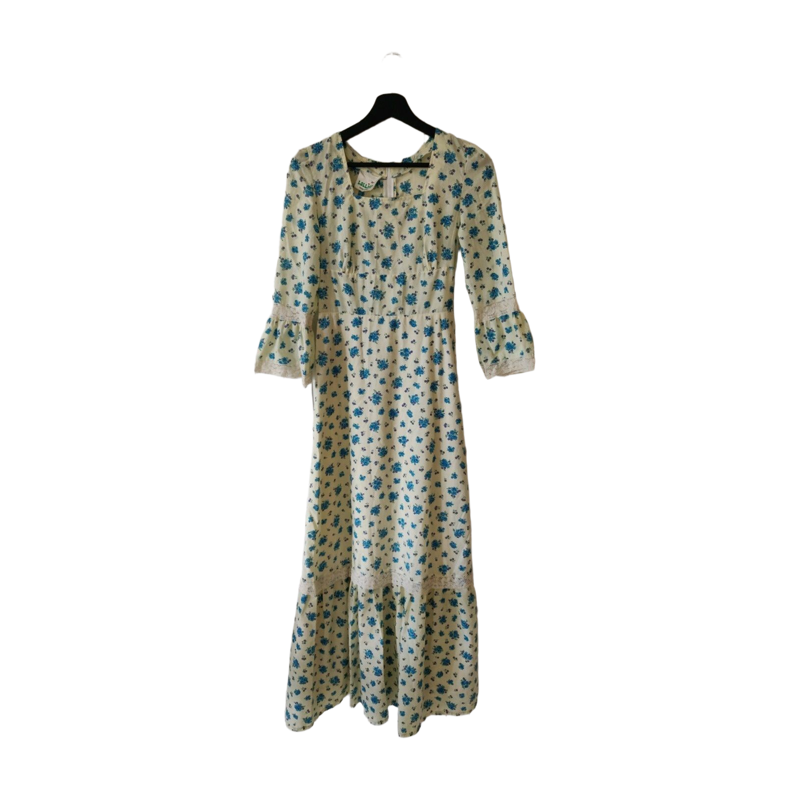 Upea vanha kotimainen mekko. Materiaalilappua ei ole, mutta tuntuu puuvillalta ja pesulapussa 40C pesuohje. Kunto kuin uusi ja vastaa mielestäni kokoaan. Hameosassa on vuori.