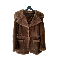 Ihana ja lämmin kotimainen vintageturkki. Kokolappu sanoo 42, mutta menee parhaiten S tai pieni M koolle. Säilytyksestä vähän rytyssä, mutta oikenee. Materiaalista ei tietoa.