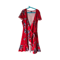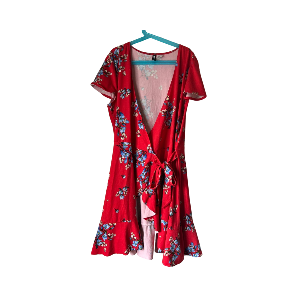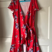 Lyhyt kietaisumekko vyöllä, kukkakuosi, lyhyet hihat.
