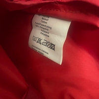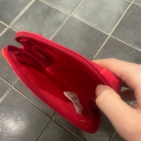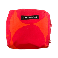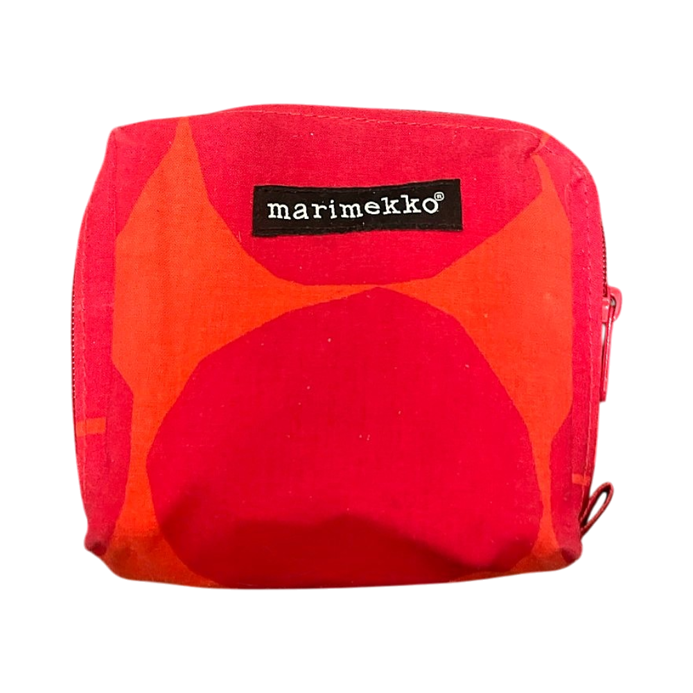 Hyväkuntoinen punainen kosmetiikkalaukku.