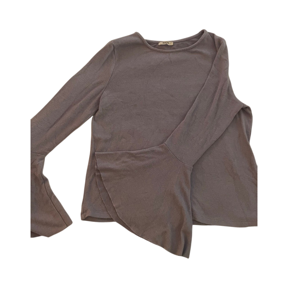 Kevyt, violetti pitkähihainen pusero, liehukehelma.