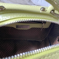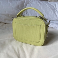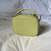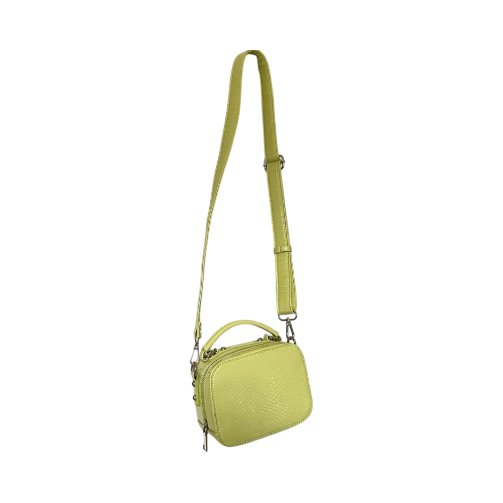 Pieni kirkkaanvihreä boa-kuvioinen laukku. Irrotettava ja säädettävä olkahihna. Sisällä pikkutasku. Tekonahkaa / vegaaninen.