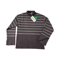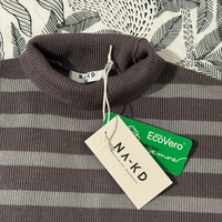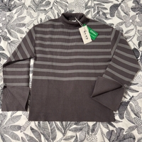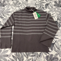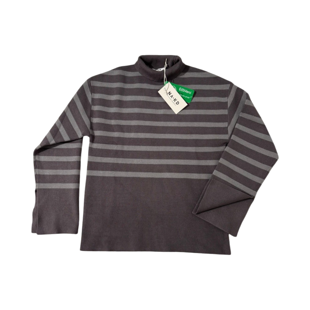 Striped ribbed roll-neck sweater, long sleeves, fitted hem.