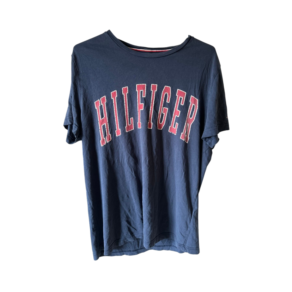 Lyhythihainen t‑paita isolla logolla, käytetty kunto.