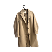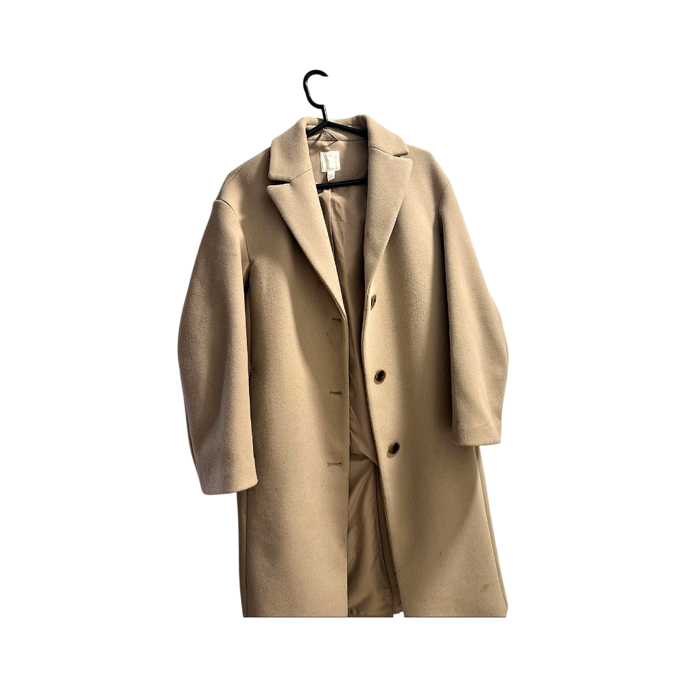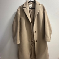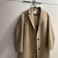 Kaunis beige villasekoitteinen takki, hyvässä kunnossa, muutamaa huomaamatonta tahraa lukuunottamatta.