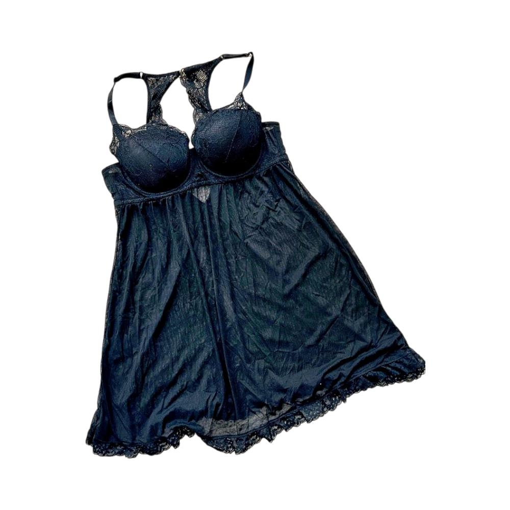 Musta pitsinen yöpaita, säädettävät olkaimet, pehmustetut kupit.