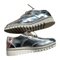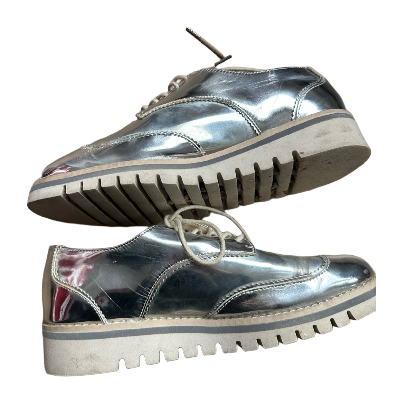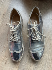 Hopeanväriset nauhakengät, käytetyt, mutta ehjät