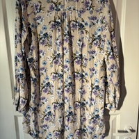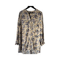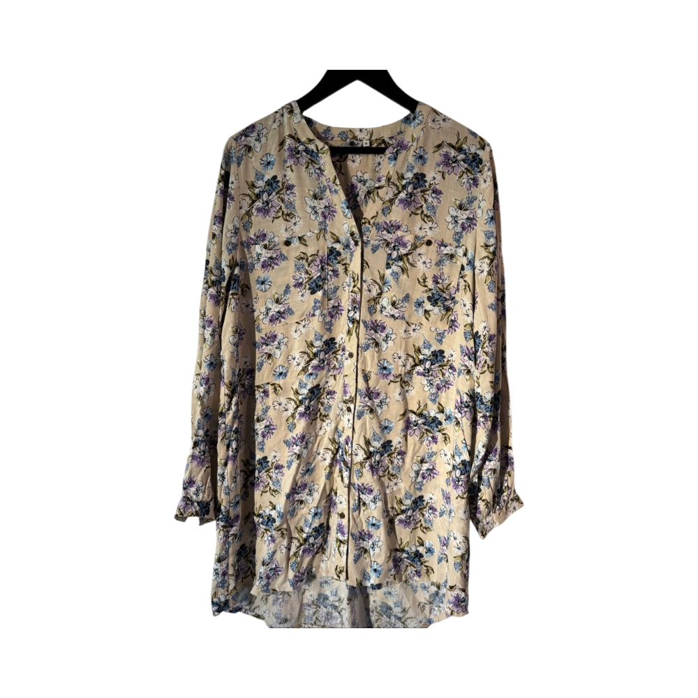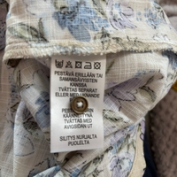 Kevyt kukkakuosinen pitkä tunika, napit edessä. Piilotaskut, reilu koko.