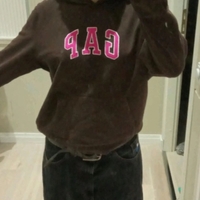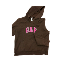Brown pullover hoodie with pink GAP logo, kangaroo pocket. Children’s XL so adult s.