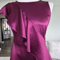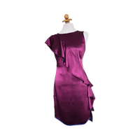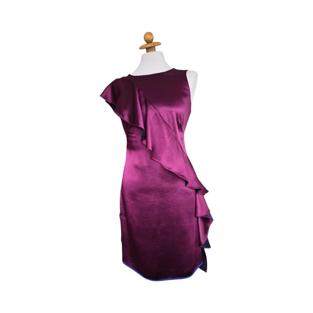 Diane von Fürstenberg Satin Ruffle Dress in Deep Magenta – Size XS