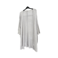 Sheer grey cardigan by Japanese brand Ropé Picnic. Made from UV-protective material, ideal as a light cover-up for breezy summer days. Size 40, best fits medium due to slightly tighter sleeves. Very good condition.