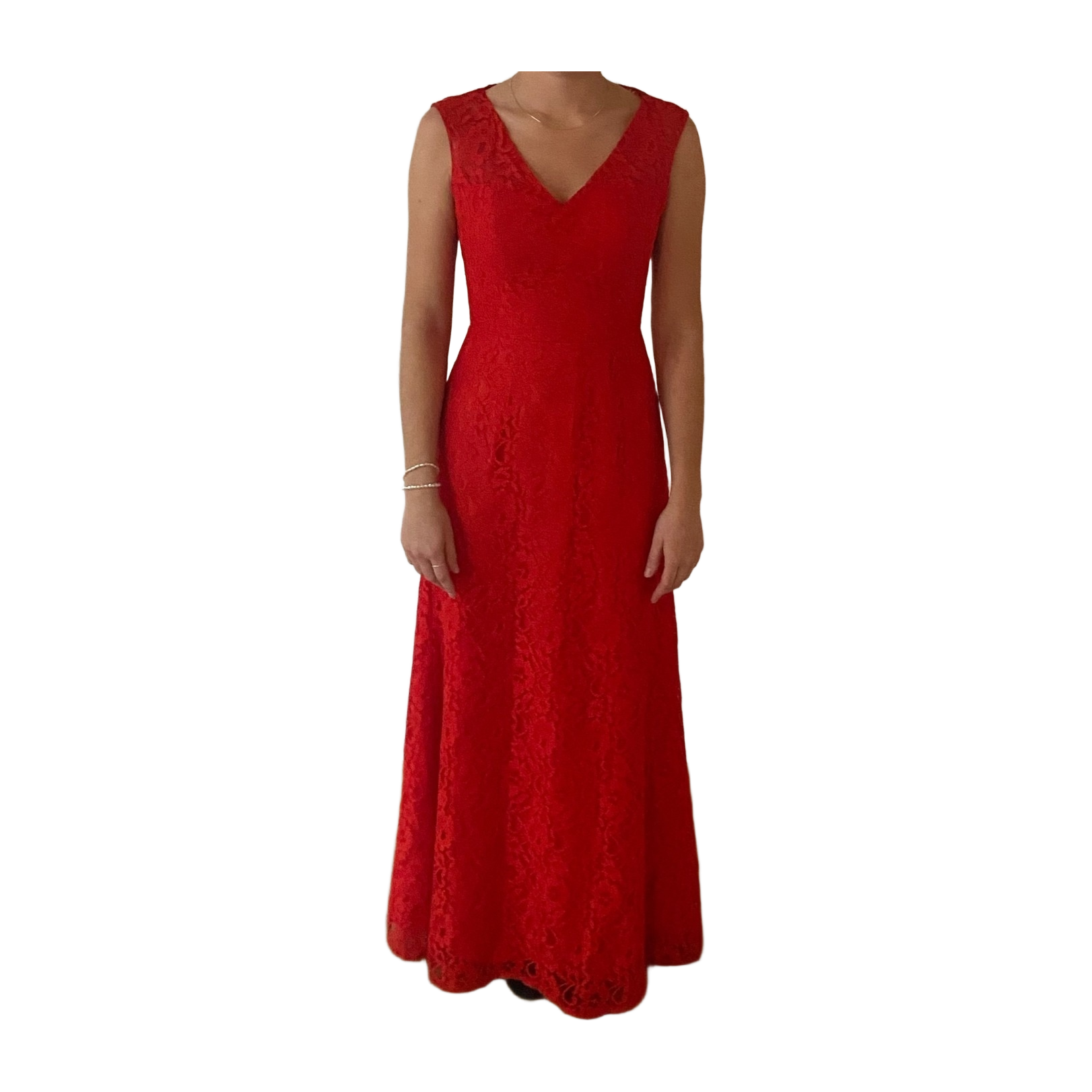 Maxidress, red, lace,105cm, zipper, (saa tulla kokeilemaan Espoo/Helsinki)
