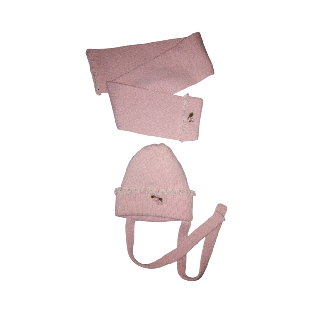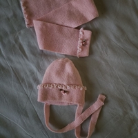 Neulottu vauvan hattu ja huivi, söpö koristelu.
