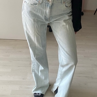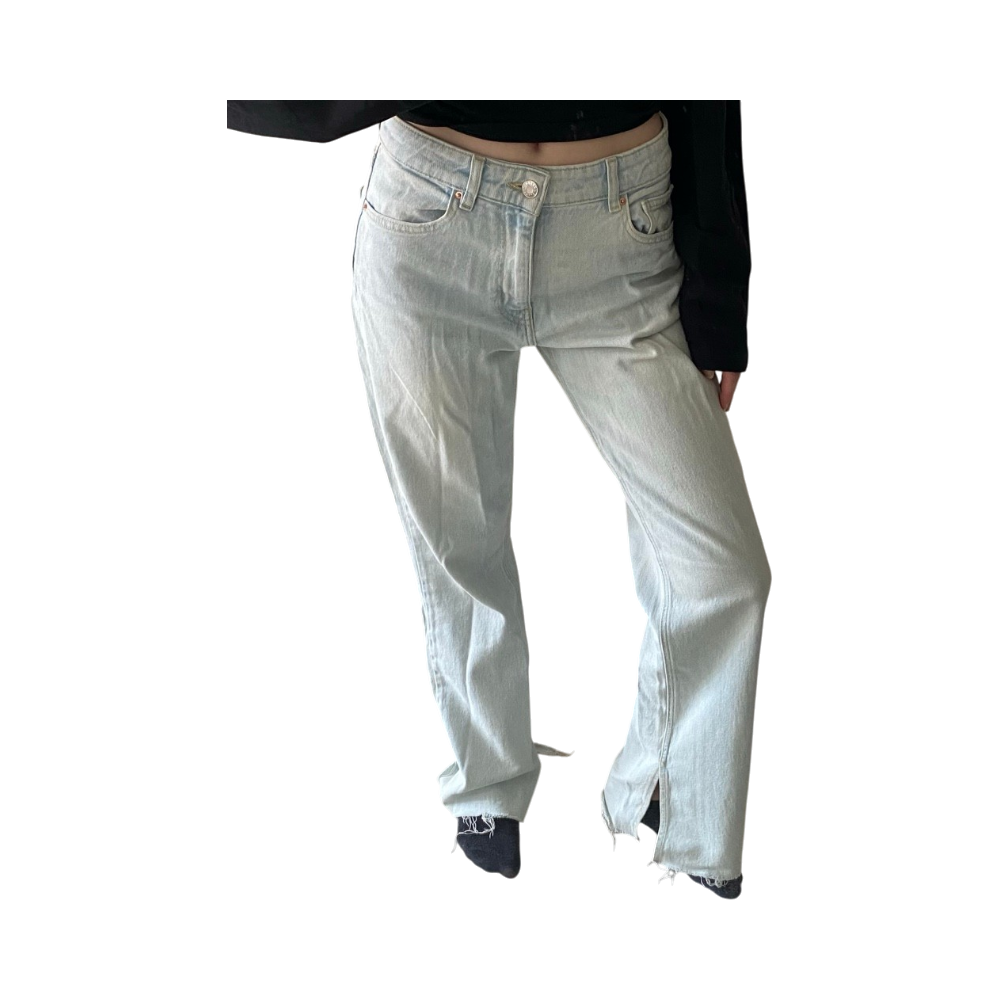 vaaleansiniset suoralahkeiset farkut koossa 36🩵lahkeissa halkio. käytetty pari kertaa
