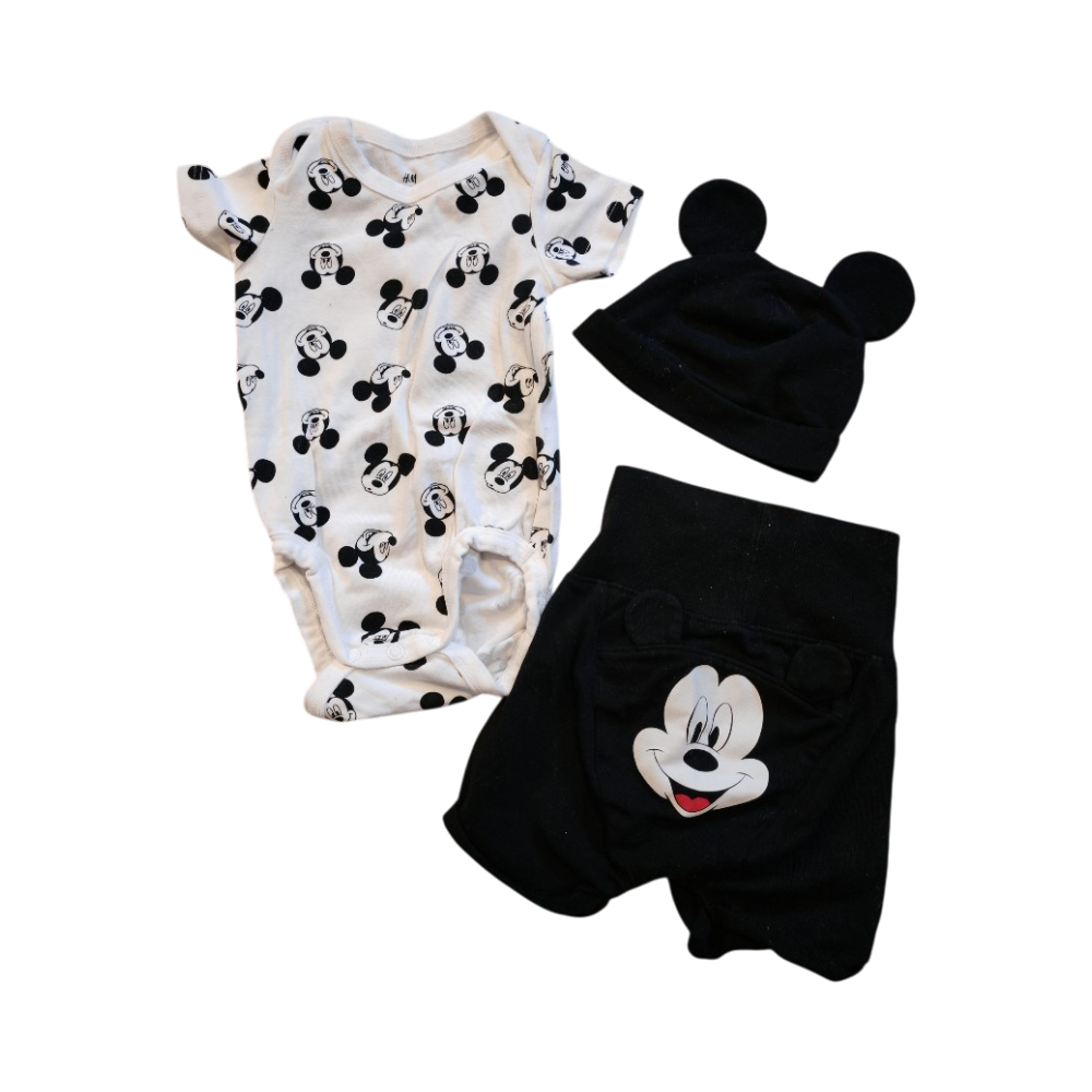 3-osainen vauvan setti, Mickey Mouse -teema, koko 62 (3kk).