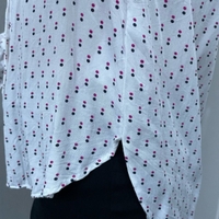 Valkoinen Hampton Republic pusero koossa 36. Vadelmanvärisiä ja mustia yksityiskohtia. Miellyttävää kangasta, 100% viskoosia & uudenveroinen💌🥰Koodilla SH4752 saat ilmaisen toimituksen!