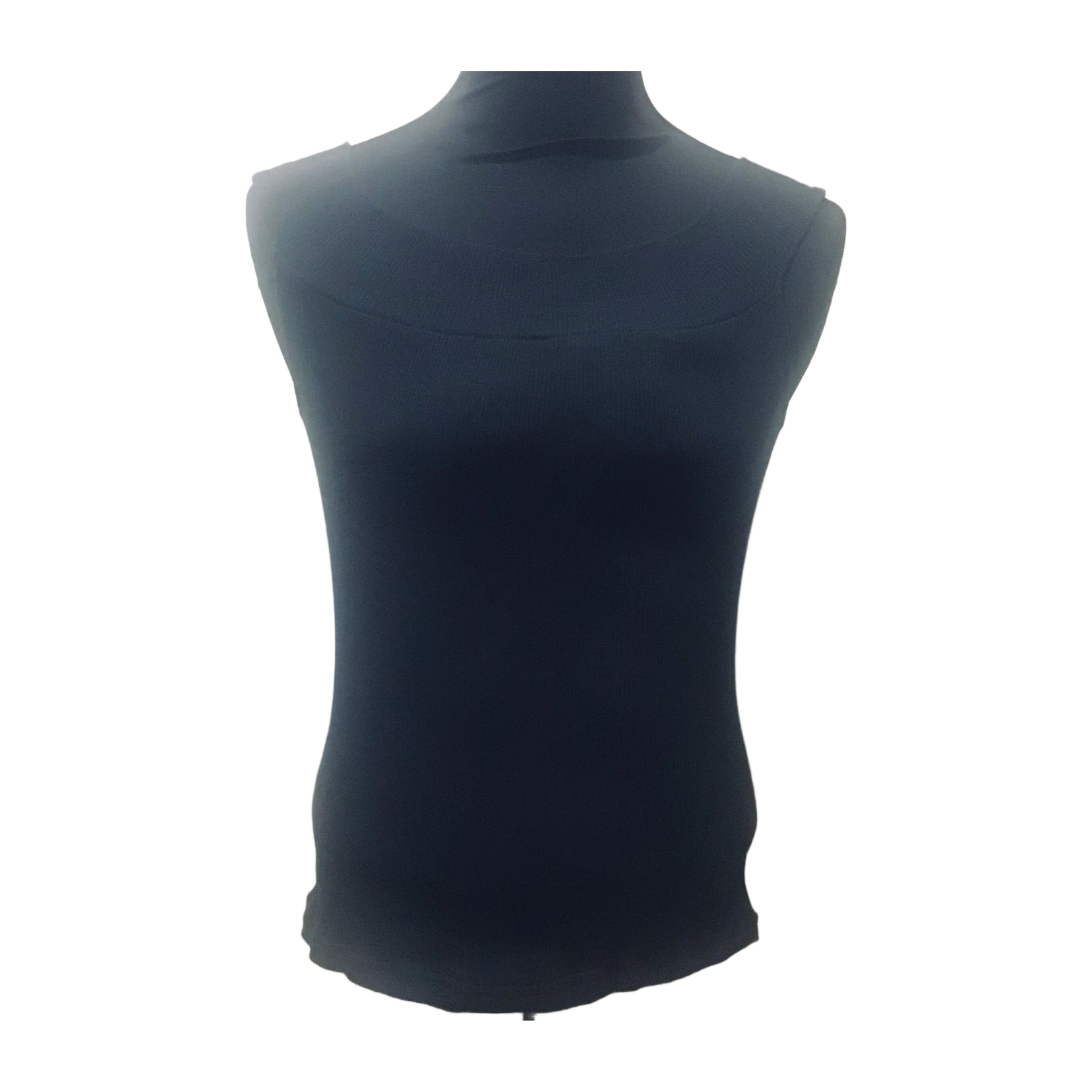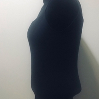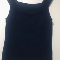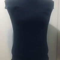 Musta, hihaton toppi 80-luvulta. 🇮🇹 Ollut vuosia käyttämättä, mutta pinnassa on vähän pesunukkaa, joka erottuu vain läheltä. Trikoo rib-neulosta. Ei kokolappua, käy koolle L - XXL (kuvissa koon 44/46 nukella). Pääntien kaarroke jatkuu olkapäille ja muodostaa leveät olkaimet, jotka voi myös laskea alemmas ja käyttää puseroa offshoulder-mallisena. Leveys kainaloiden kohdalta 44 cm, joustaa noin 65 cm:iin. Pituus olalta helmaan 60 cm. 🚭, ei lemmikkejä. #vintage #sleeveless #top #80s #black