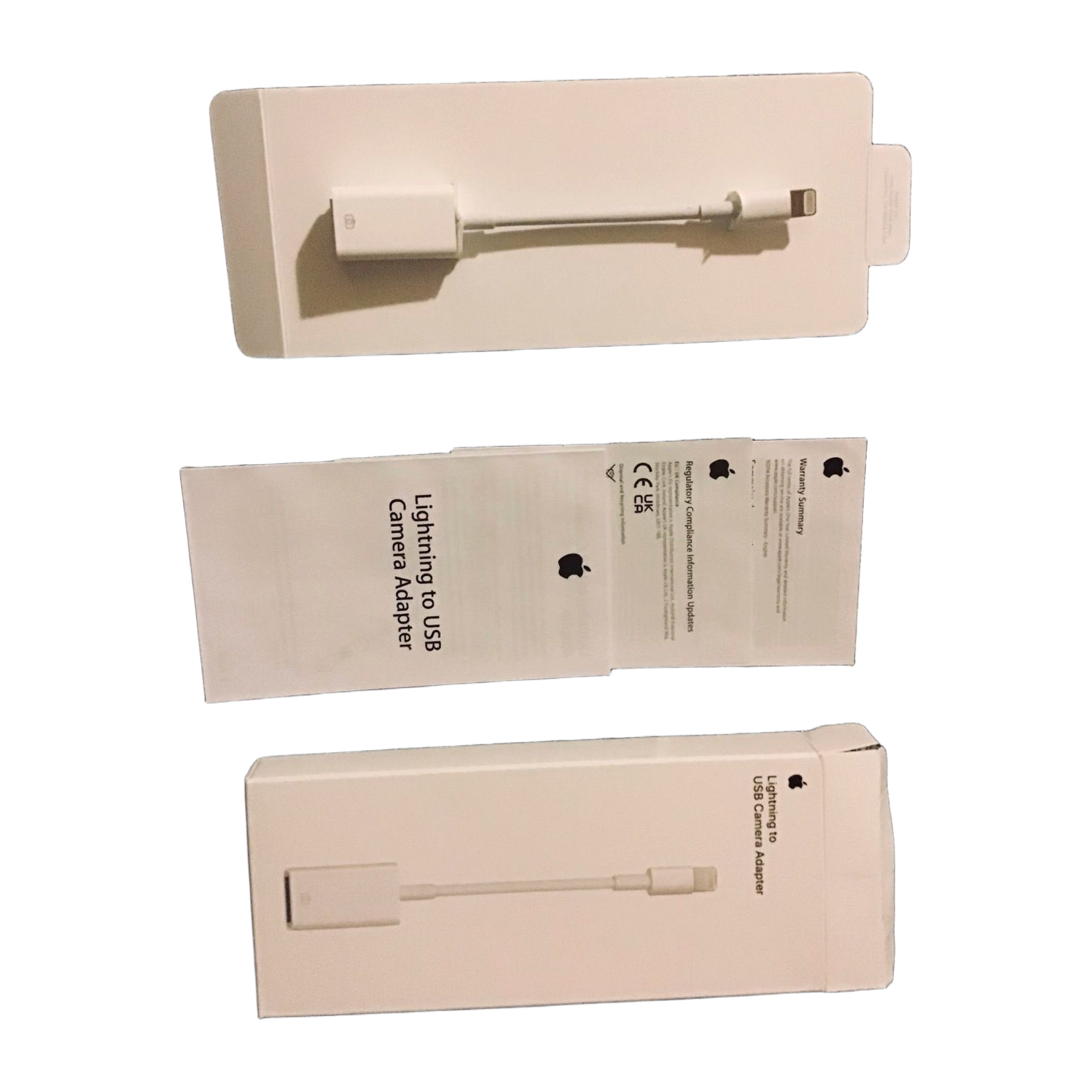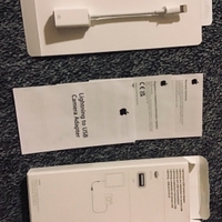Käyttämätön lightning to USB kamera-adapteri, tilattu Applen omasta verkkokaupasta. Tämän avulla voi siirtää kuvia digikamerasta iOS-laitteelle, ja toimii myös toiseen suuntaan, jos käyttöjärjestelmä on vähintään iOS 9.2. #original #apple #accessory #unused