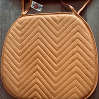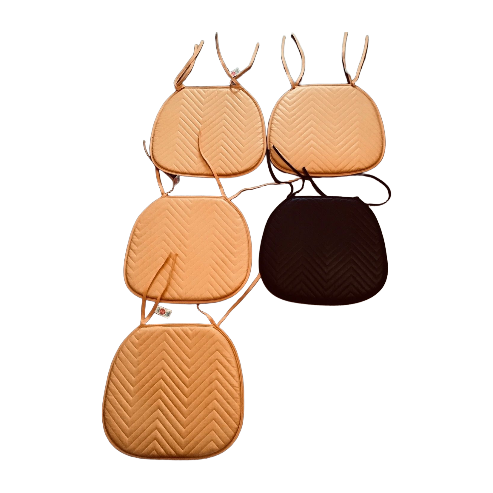 5 kpl 🇫🇮 Liisa & Matti Design, Quality Finnish Textiles istuintyynyjä tuolille. Vuodelta 1996 tai sitä vanhemmat: 4 oranssinkeltaista (parhaiten keltaisen sävy näkyy kuvassa 3) ja 1 musta. Kaikki tasaisen väriset, kuvissa vain valo osuu epätasaisesti. Mitat n. 35 x 39 cm. Tikattu päällinen, jossa hieman valossa hohtava kangas. Ohut vaahtomuovitäyte. Olleet kuivassa tilassa varastoituina suojassa auringonvalolta koko ikänsä. Pesu 40 asteessa. 🚭, ei lemmikkejä. #vintage #90s #80s #yellow #blackä