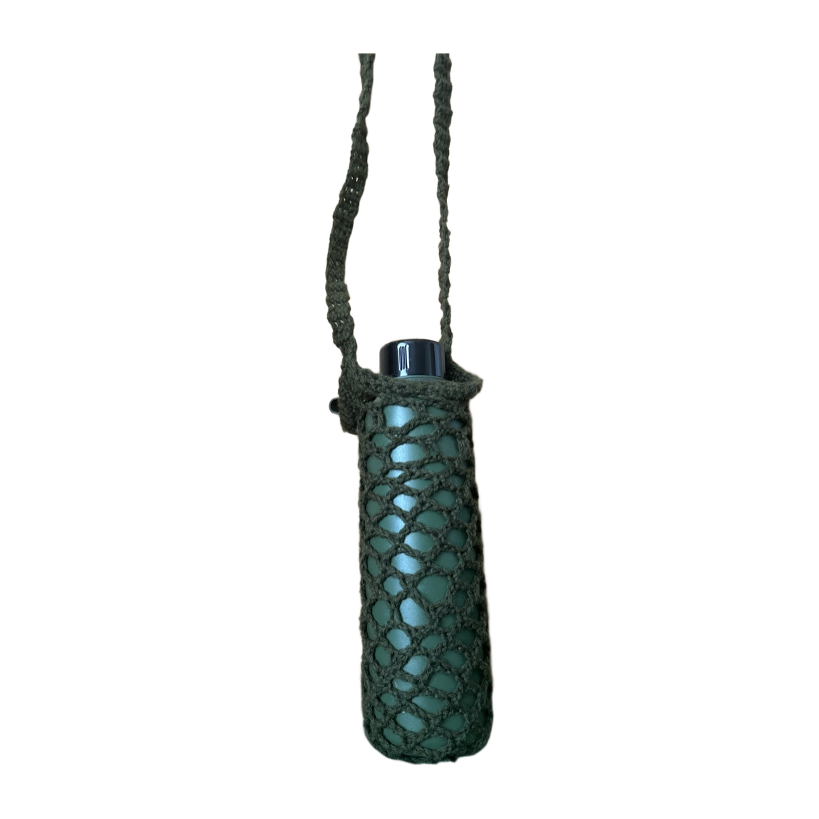 Käsin virkattu kantokassi juomapullolle, vihreä.