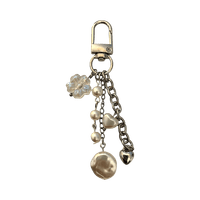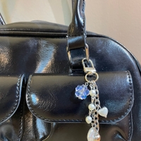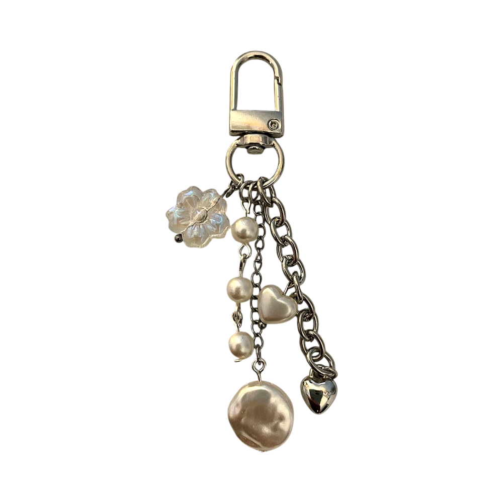 Käsintehty hopeanvärinen laukkukoru/avaimenperä akryylihelmillä ja sydänriipuksella🤍