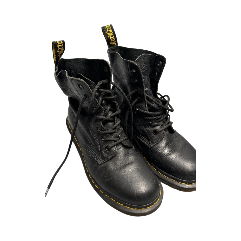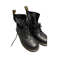 Mustat nahkakengät, keltaiset ompeleet, käytetyt mutta hyväkuntoiset. Koko 39 , Dr. Martins